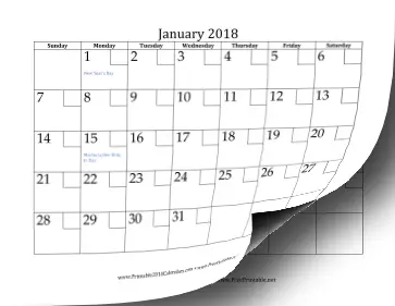 This printable 2018 calendar presents each month on a full page, and each day includes a checkbox to help keep track of what you have accomplished. Free to download and print.